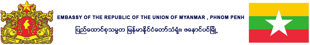 ကမ္ဘောဒီးယားနိုင်ငံဆိုင်ရာ မြန်မာသံအမတ်ကြီး ဦးကျော်စိုးမင်းနှင့် ဇနီး ဒေါ်ဇာနည်ကျော် ဦးဆောင်သည့် မြန်မာသံရုံးဝန်ထမ်းများသည် နိုင်ငံတော်ယာယီသမ္မတ၊ နိုင်ငံတော်လုံခြုံရေးနှင့် အေးချမ်းသာယာရေးကော်မရှင် ဥက္ကဋ္ဌ၊ ဗိုလ်ချုပ်မှူးကြီး မင်းအောင်လှိုင်နှင့်ဇနီး ဒေါ်ကြူကြူလှ တိုက...